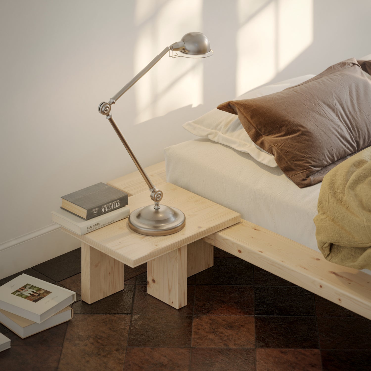 Unsere Möbel sind aus Massivholz Kiefer gefertigt. Ehrlich, langlebig und verantwortungsvoll bezogen. Entworfen, um zu halten. In Qualität und Stil. Sie geben Platz für Altbewährtes, Secondhand-Fundstücke und auch deine geschätzte Designerlampen. Das ist Nachhaltigkeit, ohne nur über Zertifikate zu reden.