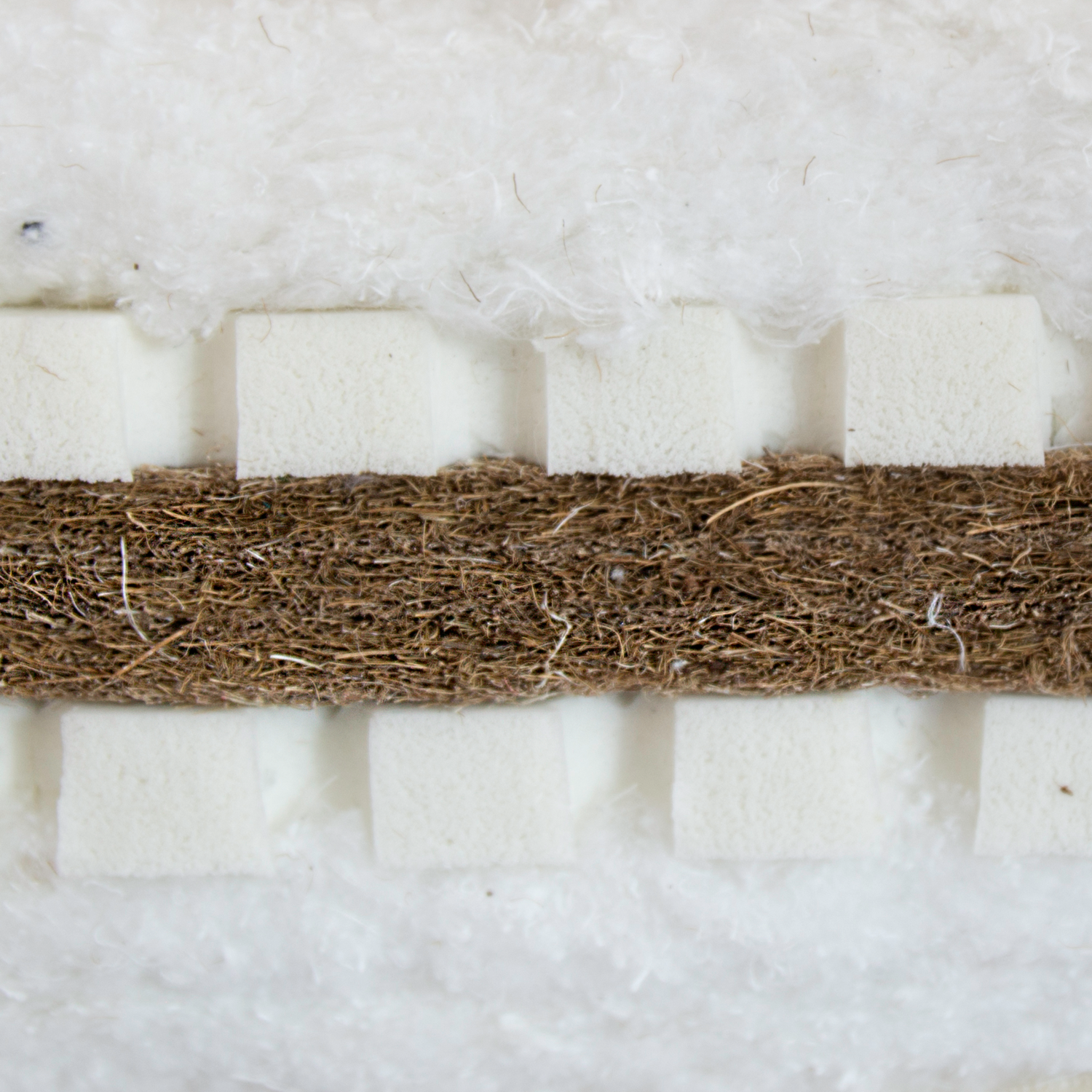 Baumwolle (90–95 %) / Polyester (5–10 %) – Latex – Kokos