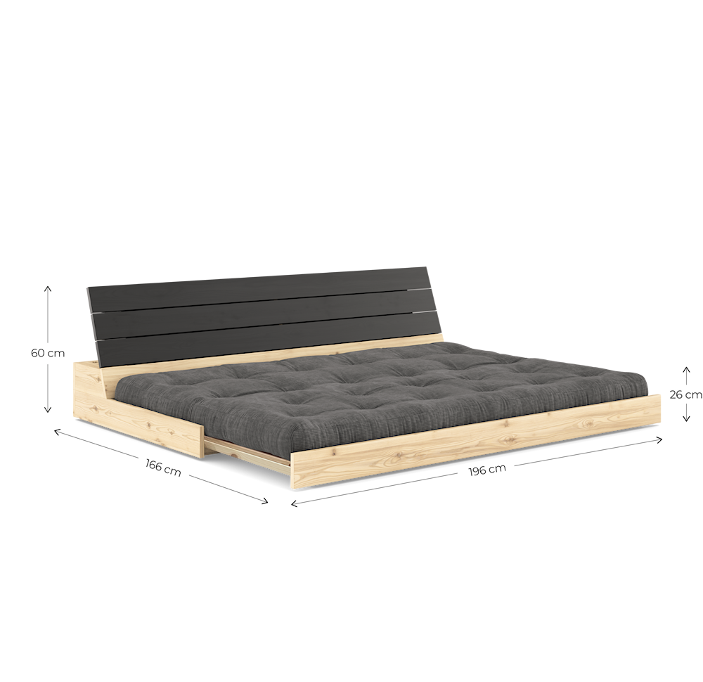 Der Bettrahmen aus FSC®-zertifizierter Kiefer und eine dick gepolsterte Futonmatratze sorgen für Komfort beim Sitzen und Liegen und verbinden Funktionalität mit einem Hauch von Luxus.