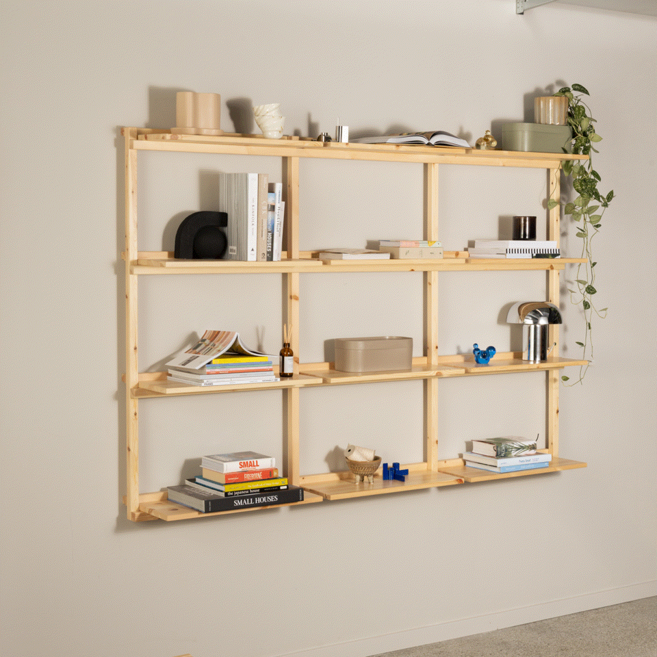 A shelving series built on lightness - in design and use. Movable shelves click into place without screws, so you can shape the look as you like. Available in three sizes with 4, 6, or 12 open shelves for books, art, and the objects that make a space yours.