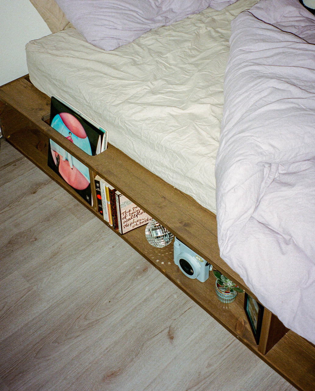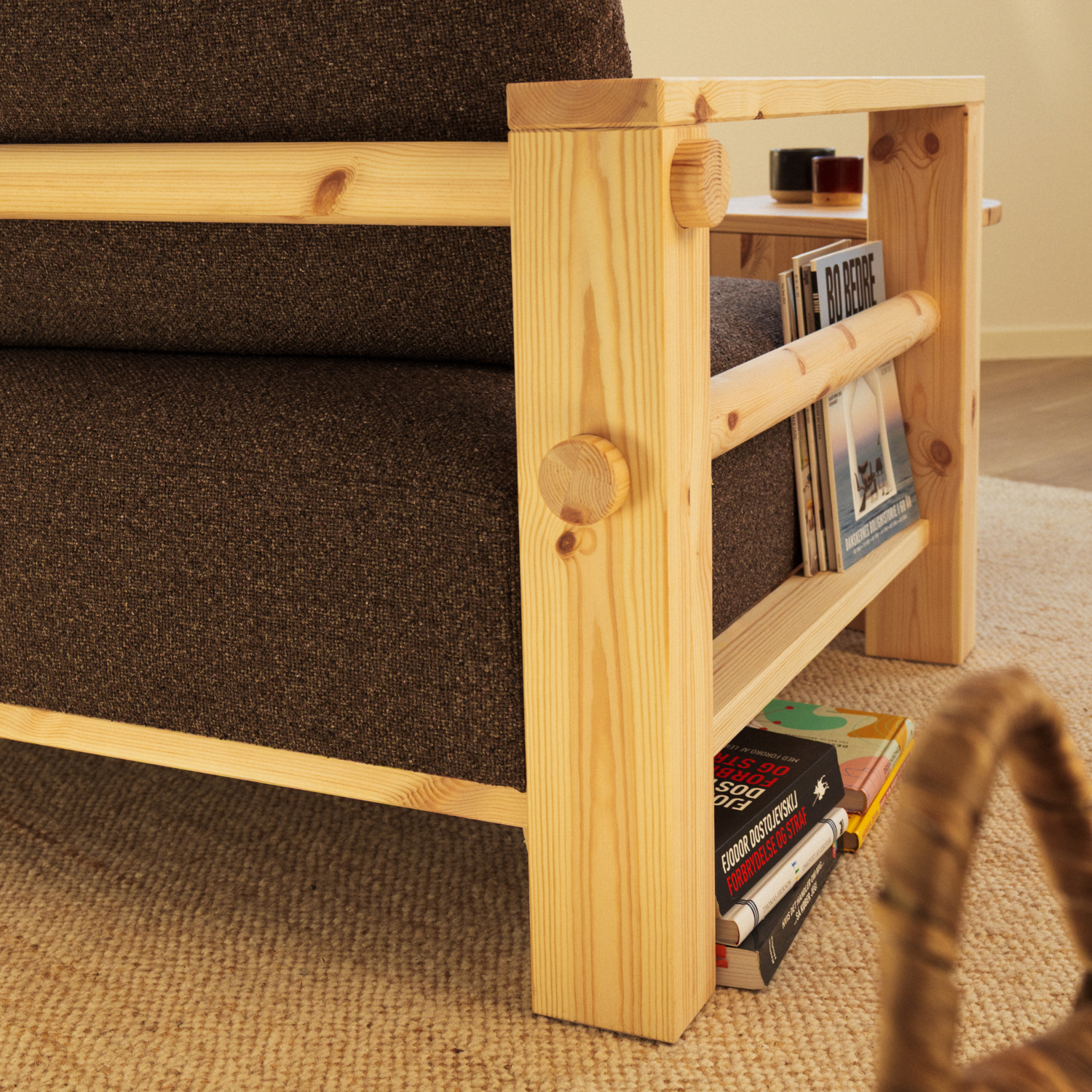 An open, architectural frame in solid pine, where honest construction becomes the design.