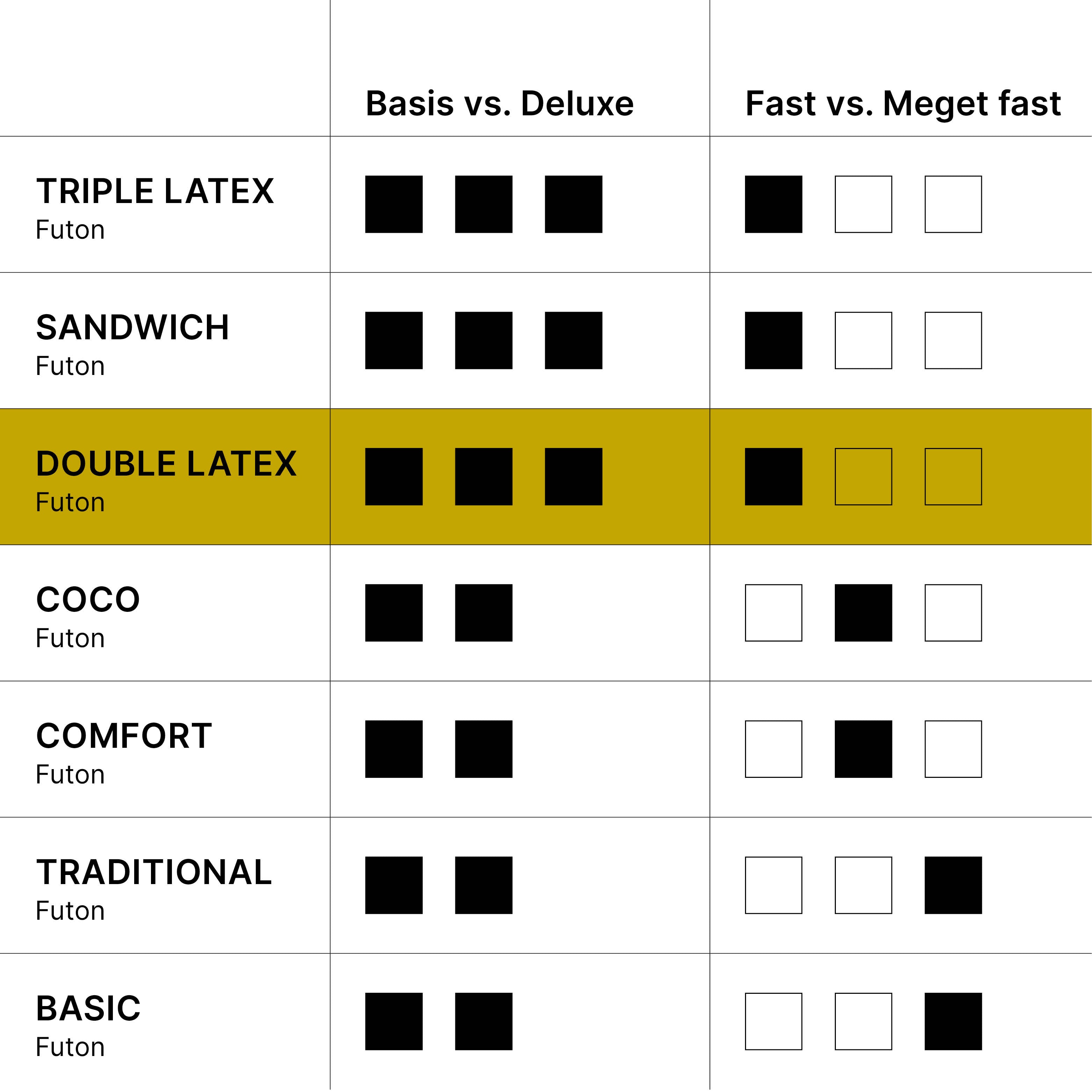 Our Double latex futon is an 18 cm thick cotton bed mattress with a latex foam core. By applying 5-10% polyester to our cotton, we ensure the higher density and thickness of our futons compared to traditional Japanese futon bedding. However, it still inherits all the good qualities of a traditional Japanese futon. The Double latex futon will give you a soft sleeping surface. The cotton in the futon will adjust itself to your body and support it, and the latex will isolate all movement.