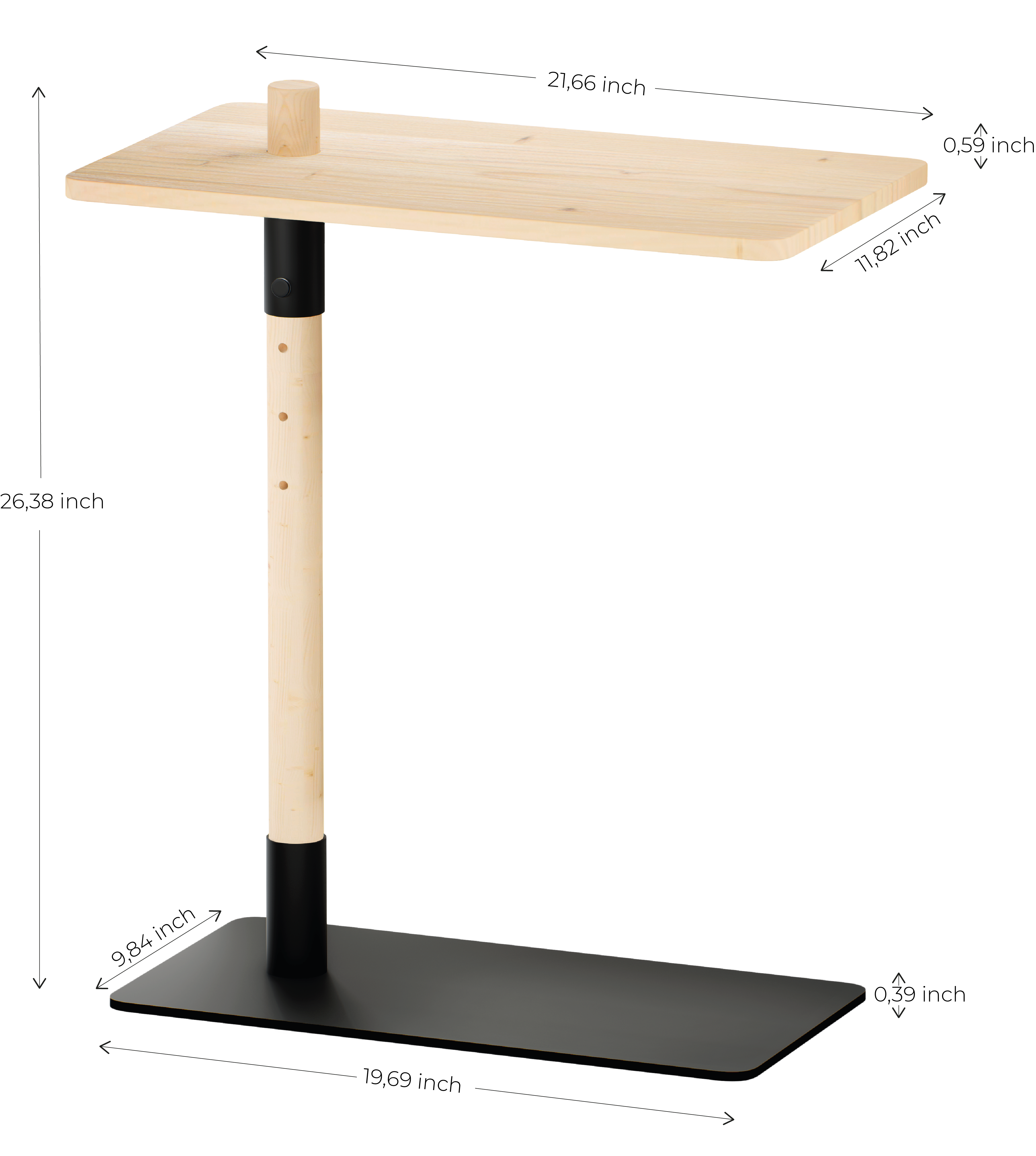 Adjust Side Table is an architect-designed side table that unites simple and classic design with functional finesse. The side table's solid base ensures excellent stability, while the lightweight construction makes the table easy to move. The tabletop measures 55 x 30 cm and offers many uses - perfect as a nightstand in the bedroom, handy by the sofa, ideal in the reading corner, or as a workstation by the lounge chair. With five adjustable heights, the Adjust Side Table easily adapts to your needs and fits into a variety of spatial contexts. The side table is made of FSC®-certified pine and powder-coated steel., this side table combines multifunctionality with style.
