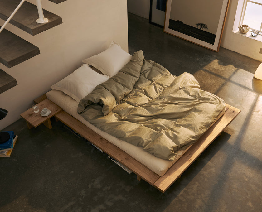 The bed frame, made from FSC®-certified pine, and a thick, padded futon mattress, guarantee comfort in both sitting and lying positions, blending functionality with a touch of luxury.