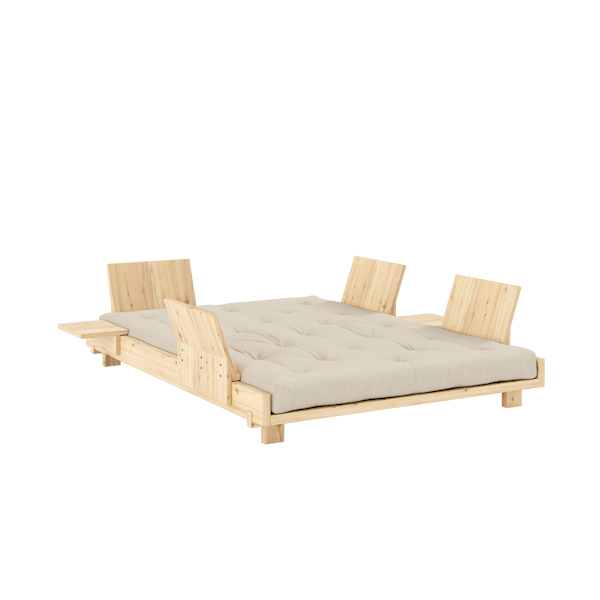 Artikel 434101747146Social sofa bed ist ein schlichtes Schlafsofa, das minimalistisches Design neu interpretiert. Mit seinem schwebenden Ausdruck und erhobenen Form verleiht es dem Raum Leichtigkeit. Das Schlafsofa wird mit einem einzigartigen, flexiblen Zubehör wie Beistelltisch und Rückenlehne geliefert, die sich leicht arrangieren lassen und von allen Seiten genutzt werden können. Dadurch wird das Schlafsofa mehr als nur ein stilvolles Schlafsofa – es lädt zu sozialem Beisammensein und Entspannung ein. Wähle zwischen 4 Rückenlehnen und 2 Beistelltischen oder 2 Rückenlehnen und 2 Beistelltischen. Das Schlafsofa wurde von Says Who entworfen.