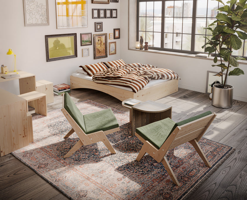 Mini Cube wird schnell zum Lieblingsplatz im Wohnzimmer! Dieses multifunktionale Futon ist alles andere als quadratisch – mit einer einfachen Kippbewegung verwandelt sich Mini Cube von einem gemütlichen Sessel in eine bequeme Schlafgelegenheit und sogar in einen Pouf. Die komfortable Matratze lädt zum Spielen, Entspannen und Kuscheln ein. Mini Cube ist in einer Vielzahl schöner Farben erhältlich und verleiht jedem Zuhause Charme.