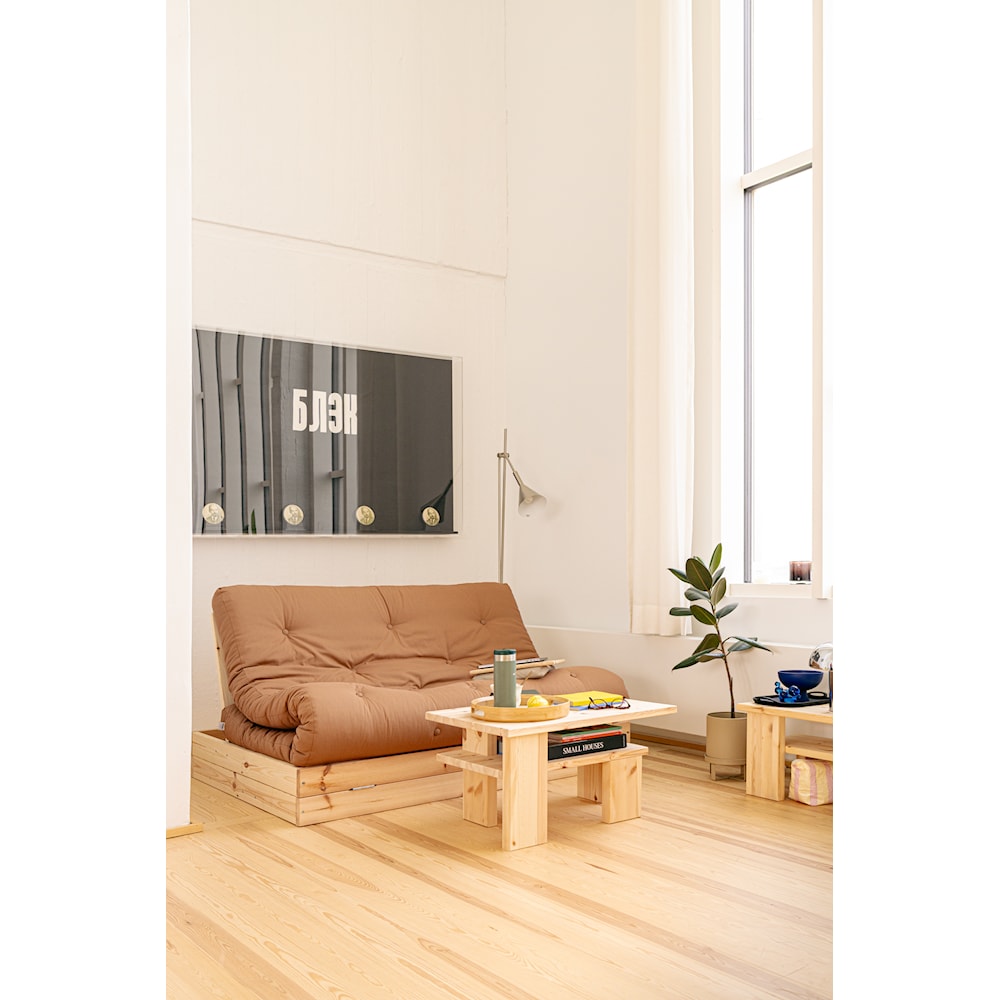 The Japan Coffee Table is the largest table in the Japan series – created with the same honest materials and visual weight as the Japan bed. The table's asymmetrical design and inset shelf add both functionality and a more organic look to the otherwise stringent design language.