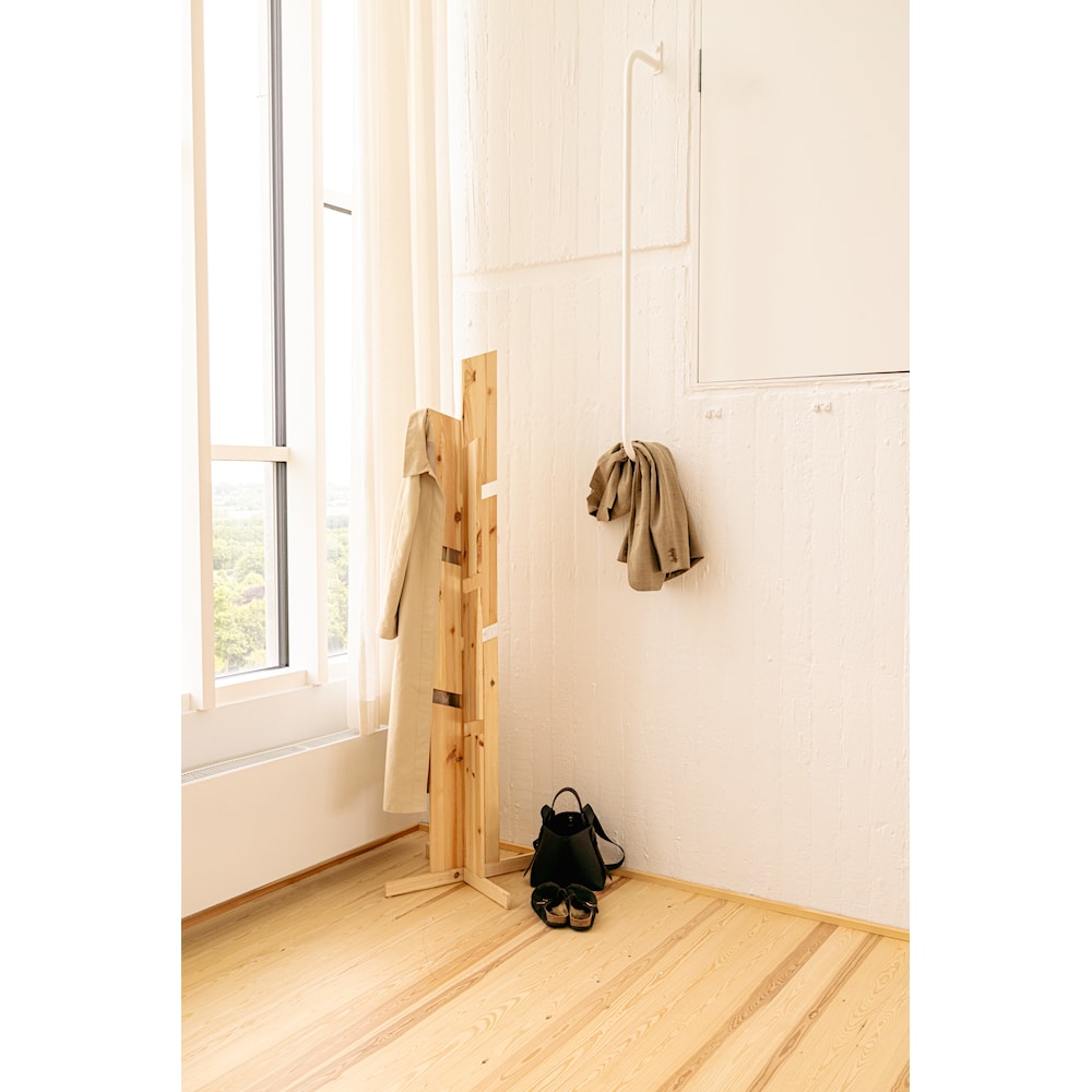 Designed by Fabien Roy, the Keeper Coat Stand combines a sculptural expression with functional storage. The stacked planks in raw pine create a piece of furniture that makes an impression - in the hallway, bedroom or wherever you want to create an eye-catcher with function and character.